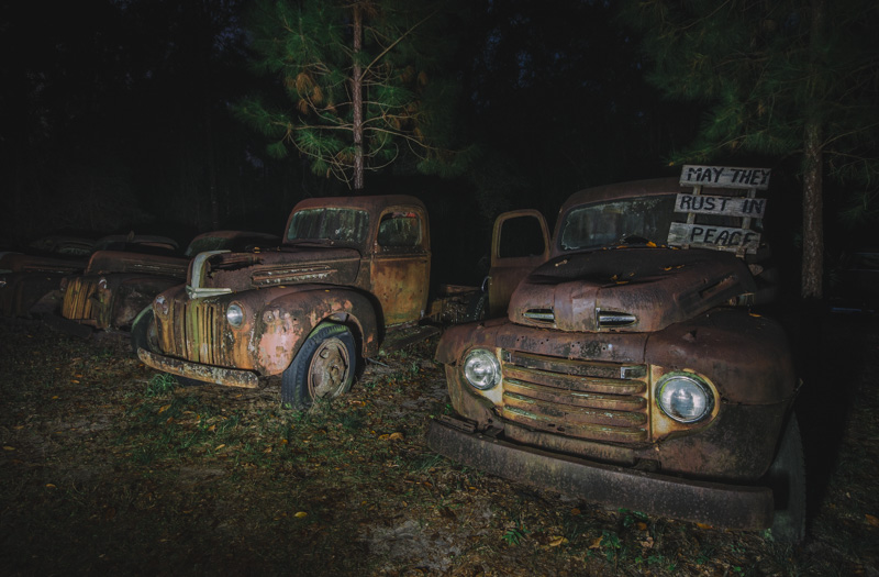 There is also local ordinance against people from collecting junk cars on their property in public view. Fortunately, the Harvey family has been collecting these cars well before the ordinance was put in place, so they have been grandfathered in allowing them to continue displaying their cars without the city bothering them. In fact, the Wakulla County offers a guide on points of interest along the Big Bend Scenic Byway, a nationally designated scenic byway, which includes Pat Harvey’s car collection alongside other places such as the Saint Mark’s Lighthouse. The trucks are located south of Crawfordville on U.S. 319 and the Harvey family welcomes photographers and travelers to stop by.